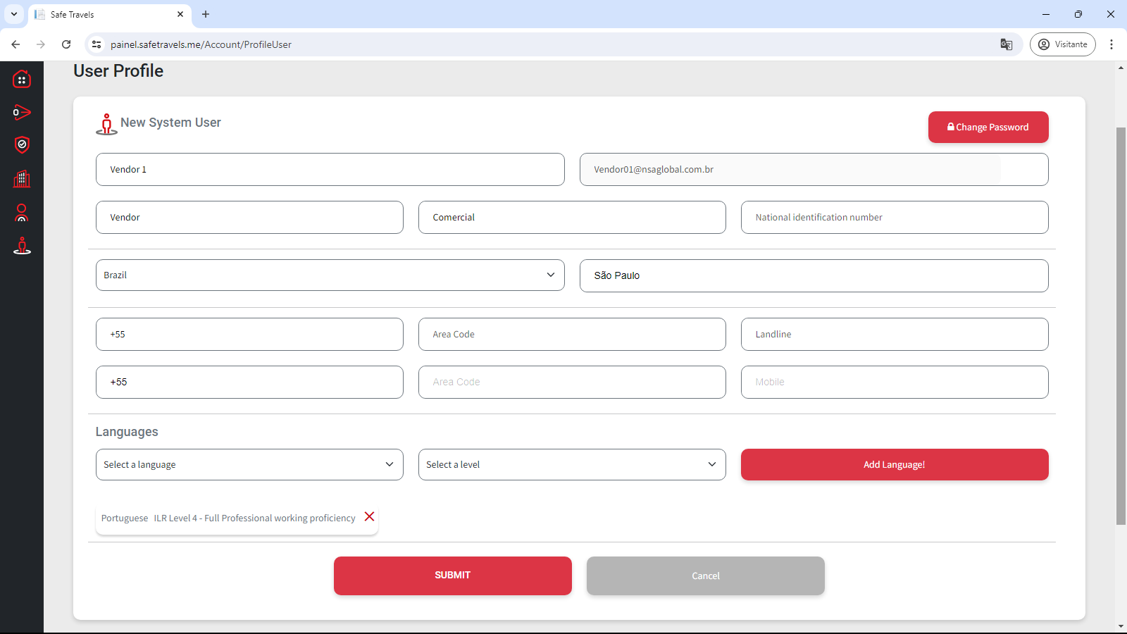 Botão Submit: Finaliza as alterações do cadastro.