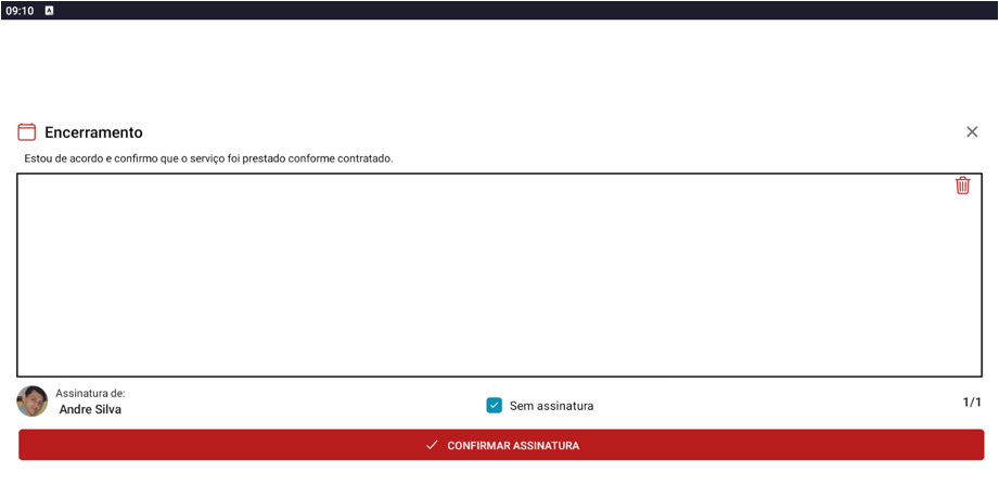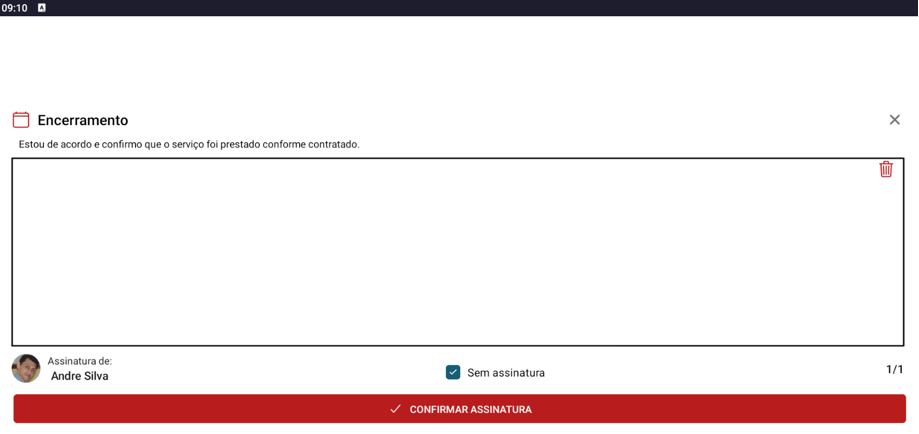 Dependendo do caso, poderá optar por encerrar sem a assinatura do passageiro, marcando a caixa de seleção “Sem assinatura”.