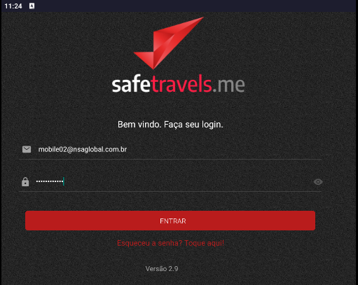 Se o operador esquecer a senha, ele deve clicar em "Esqueceu a senha? Toque aqui!". Um E-mail com instruções para redefinir a senha será enviado.